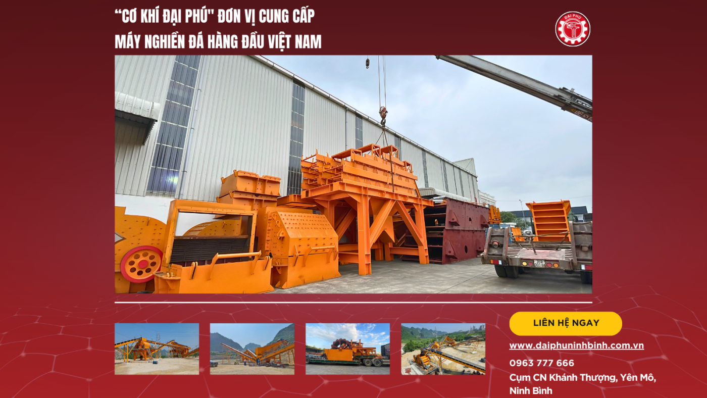 Trong lĩnh vực khai thác và chế biến đá xây dựng, lựa chọn nhà cung cấp máy nghiền đá uy tín quyết định rất lớn đến hiệu quả đầu tư, chi phí vận hành và tuổi thọ dây chuyền. Với hơn 25 năm đồng hành cùng các mỏ đá trên khắp cả nước, Cơ Khí Đại Phú được nhiều chủ mỏ tin tưởng là đơn vị cung cấp máy nghiền đá hàng đầu tại Việt Nam.