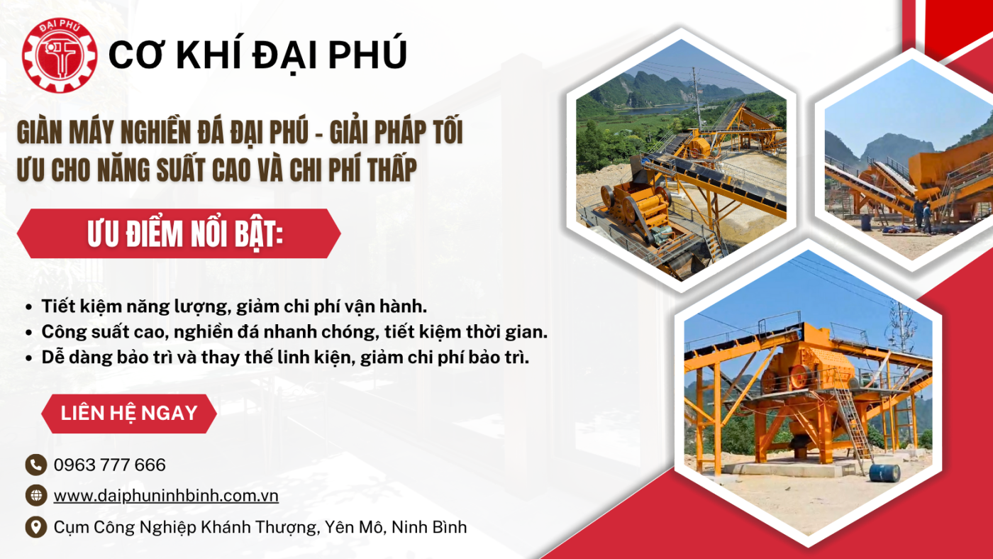Nếu bạn đang tìm kiếm giải pháp máy nghiền đá hiệu quả và tiết kiệm chi phí cho dây chuyền sản xuất, hãy liên hệ ngay với Cơ Khí Đại Phú. Chúng tôi cam kết cung cấp sản phẩm chất lượng cao, giúp tối ưu hóa quy trình sản xuất và giảm chi phí cho doanh nghiệp.