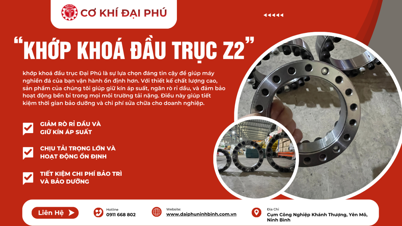 Chúng tôi cam kết mang đến cho bạn sản phẩm khớp khóa đầu trục Z2 chất lượng, giúp máy nghiền đá hoạt động hiệu quả và bền bỉ. Liên hệ với Cơ Khí Đại Phú để nhận báo giá chi tiết và được tư vấn giải pháp phù hợp cho doanh nghiệp của bạn.