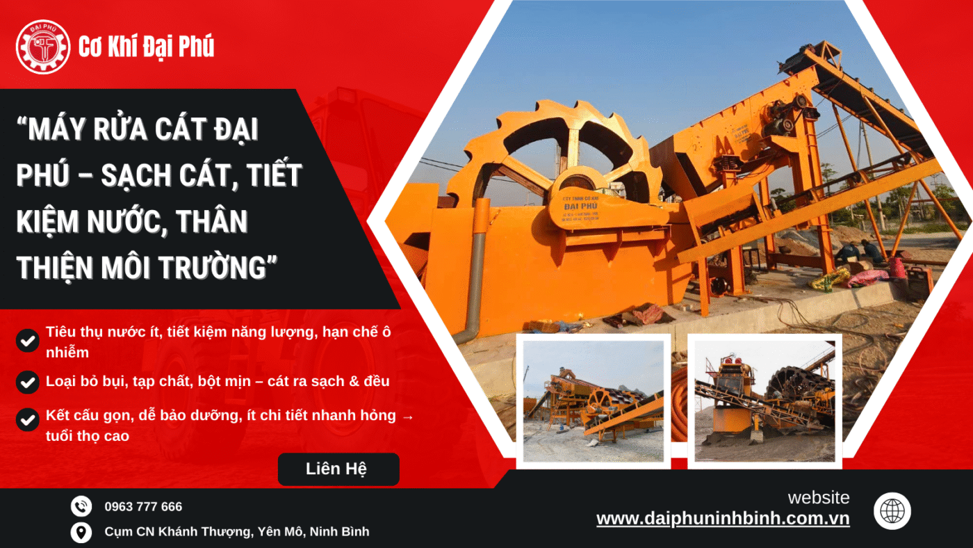 Nếu anh/chị đang tìm máy rửa cát sạch – tiết kiệm nước – thân thiện môi trường cho mỏ cát hoặc dây chuyền cát nhân tạo, hãy liên hệ ngay với Cơ Khí Đại Phú: