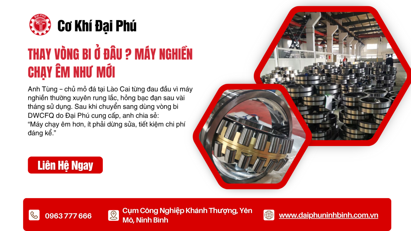 Nếu bạn đang tìm kiếm vòng bi chất lượng cao cho máy nghiền đá, hãy liên hệ ngay với Cơ Khí Đại Phú. Chúng tôi cam kết cung cấp sản phẩm chính hãng với chất lượng vượt trội, giúp tối ưu hóa quy trình sản xuất và giảm chi phí cho doanh nghiệp.
