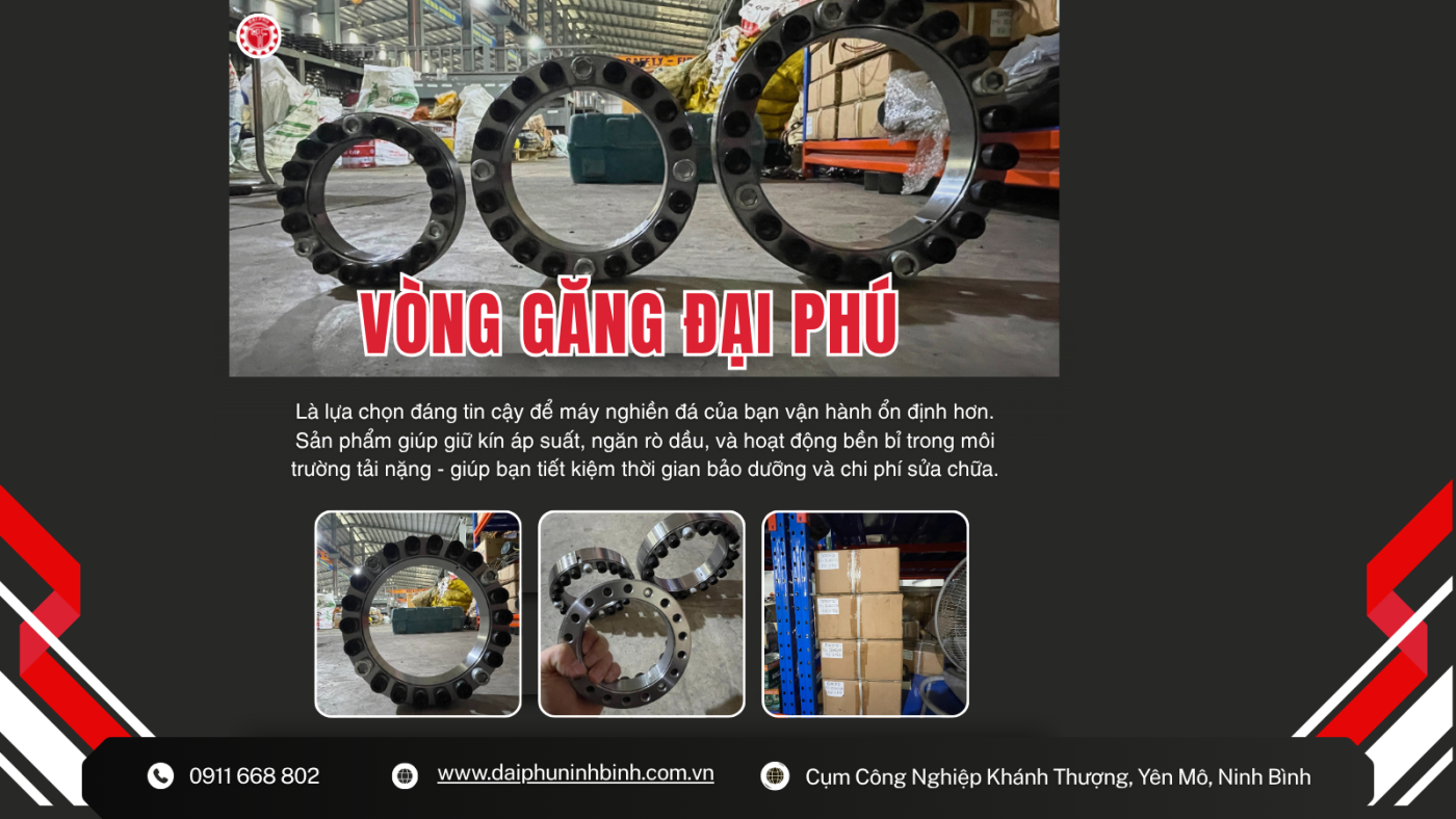 Vòng găng Đại Phú có khả năng giữ kín áp suất tốt, ngăn ngừa tình trạng rò rỉ dầu. Điều này giúp máy nghiền đá hoạt động ổn định, đảm bảo hiệu suất cao mà không làm lãng phí năng lượng hay tài nguyên. -
